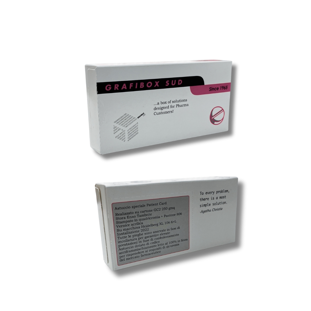 Grafibox Sud S.p.A. S.B. is a company specialized in the production of folding cartons, leaflets and labels for the pharmaceutical and cosmetics industry. The production of the first carton dates to 1965. Its success is based on the historic commitment to provide zero defect products, customer attention, punctual service and the undisputed desire to remain at the forefront, anticipating the needs of the market through targeted, strategic investments. The company also offers design and development services for the creation of various types of prototypes, feasibility analysis and rationalization; all important aspects, especially in this moment of very high attention to sustainability and efficiency. Exceptional care is taken in the management of Quality Assurance and Control services. The production of packaging for the pharmaceutical sector requires specific technical equipment and know-how, to guarantee the safety and performance of the product. With the current equipment of cutting-edge machinery and systems, Grafibox Sud has reached very high levels both, from a qualitative and quantitative standpoint. Continuous training and the great involvement of staff, in which Grafibox constantly invests, lead to continuous improvement of all company processes, the achievement of objectives and the success and the personal well-being of each individual resource. In 2022, in an evolution of its concept of doing business, Grafibox Sud proudly becomes a Benefit Company, integrating into its corporate mission the objective of having a positive impact on society and the biosphere. Sustainability has become an integral part of our business model. Our customers are increasingly called upon to be the driving force of sustainable industrial production: they must be able to rely on their strategic supplier, who is part of their production chain. Grafibox fully embraces this mission and aims, where possible, at anticipating present and future needs.